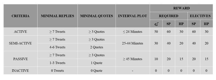 Selain para Noble, seluruh citizen juga dapat menukarkan poin keaktifan mereka menjadi Galleons tambahan pada akhir term. Poin akan disediakan dalam suatu dokumen dan penukaran dapat dilakukan dengan membalas cuitan yang disediakan dengan format: